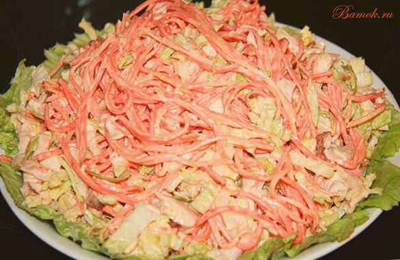 Читать далее »Рецепт изготовка этого салата несложен, но не тривиален. Секрет в том, что в блюде контрастируют два очень выраженных вкуса — копченой курицы и моркови по-корейски. Изготовление …