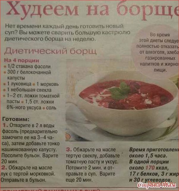 Читать далее »Диетический борщ для эффективного похудения и поддержания здоровья — рецепт, польза и правила приготовления
