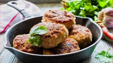 - Мясо порезать на кусочки в один см шириной, просто отбить, поперчить и посолить все по вкусу.